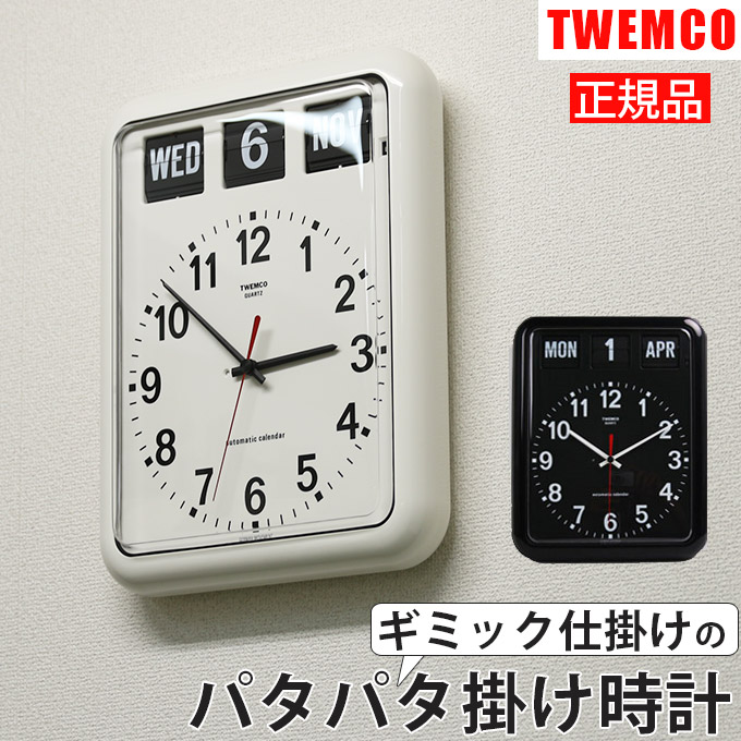 楽天市場 ギミックが目を引く 人気ブランドのパタパタ時計 掛け時計 壁掛け時計 アナログ おしゃれ レトロ調 アンティーク調 見やすい かわいい カレンダー 英語 男の子 プレゼント ギフト 男性 女性 仕掛け ホワイト 動く ブラック Twemco トゥエンコ トゥエムコ